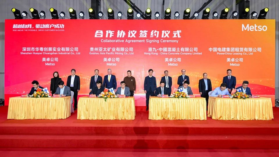儀式上,美卓分別與深圳華粵集團(tuán)、貴州亞太礦業(yè)泥堡金礦、港九-中國混凝土有限公司、中國電建集團(tuán)就一系列骨料與礦山項(xiàng)目進(jìn)行了合作簽約儀式。