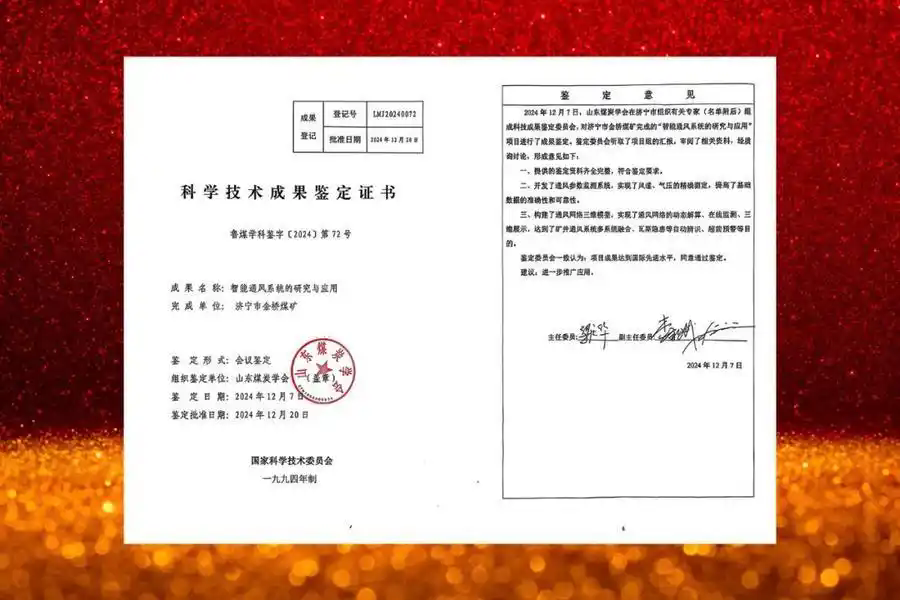 近日,山東煤炭學(xué)會(huì)對(duì)金橋煤礦“智能通風(fēng)系統(tǒng)的研究與應(yīng)用”項(xiàng)目進(jìn)行了全面而深入的成果鑒定。經(jīng)過嚴(yán)格評(píng)審,該項(xiàng)目成果憑借其卓越的技術(shù)創(chuàng)新性和實(shí)際應(yīng)用效果,被認(rèn)定為達(dá)到了國際先進(jìn)水平。這一鑒定結(jié)果不僅是對(duì)金橋煤礦研制團(tuán)隊(duì)在科技創(chuàng)新方面的肯定,也標(biāo)志著金橋煤礦在礦井通風(fēng)智能化技術(shù)領(lǐng)域邁出了堅(jiān)實(shí)而關(guān)鍵的一步。