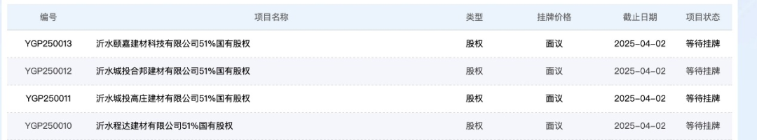 沂水縣國(guó)資掛牌轉(zhuǎn)讓四家公司全部股權(quán),均為建材類企業(yè)