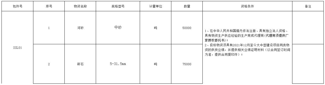 本次招標(biāo)的內(nèi)容依舊為河砂(中砂)50000噸,碎石(5-31.5mm )75000噸。但取消了“財務(wù)能力要求:代理商注冊資金不低于500萬元人民幣,經(jīng)稅務(wù)部門注冊登記核準(zhǔn)的一般納稅人,具有良好的社會信譽和財務(wù)狀況”的要求,此次招標(biāo)能否順利成交,我們會持續(xù)關(guān)注!