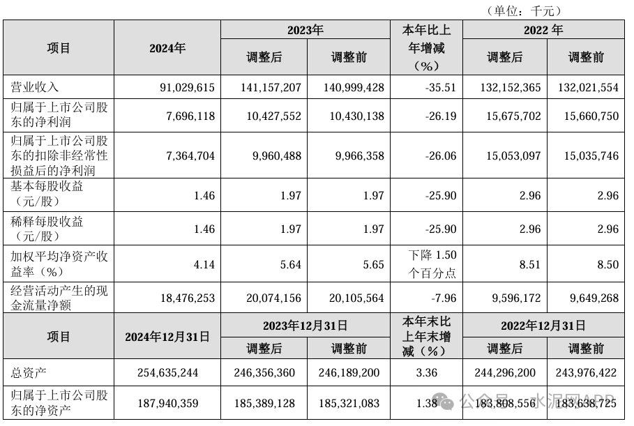3月24日,海螺水泥公告稱,2024年實(shí)現(xiàn)營業(yè)收入910.3億元,同比下降35.51%;歸屬于上市公司股東的凈利潤為76.96億元,同比下降26.19%。公司擬每股派發(fā)現(xiàn)金紅利0.71元人民幣(含稅),不實(shí)施公積金轉(zhuǎn)..