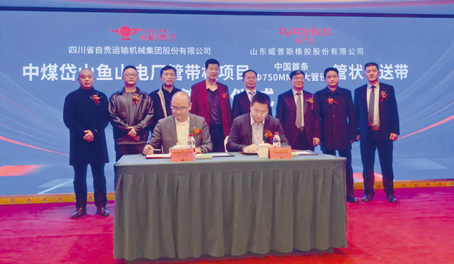 近日,隨著山東威普斯橡膠股份有限公司與四川省自貢運輸機械集團(tuán)股份有限公司合作的中煤舟山岱山魚山電廠管帶機項目簽約儀式的舉行,標(biāo)志著我國首條直徑750毫米超大管徑管狀輸送帶正式進(jìn)入實施階段,刷新了我國管狀帶式輸送機領(lǐng)域紀(jì)錄。