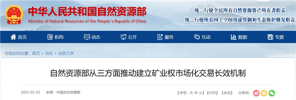 自然資源部從三方面推動建立礦業(yè)權(quán)市場化交易長效機(jī)制