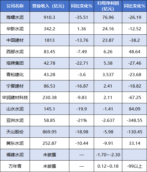 2024年水泥上市公司年報核心數(shù)據(jù)匯總