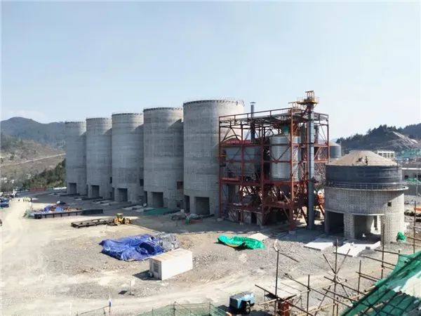 在項目施工現(xiàn)場,5個圓柱形存儲7500噸骨料的骨料庫拔地而起,工人和機(jī)械密切協(xié)作,正在建設(shè)破碎車間、制砂樓,以及相關(guān)配套設(shè)施。
