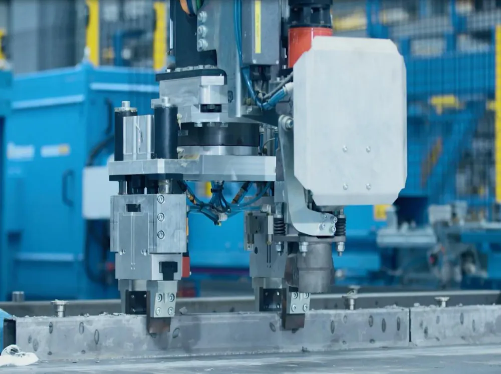 據(jù)悉,該項目依托自研的“砼聯(lián)系統(tǒng)”,可實現(xiàn)混凝土從生產(chǎn)到交付全流程的線上化管控。PC車間采用國產(chǎn)最先進的“智能生產(chǎn)線”,集成AI圖紙解析、工業(yè)機器人協(xié)同作業(yè)等12項核心技術(shù),配套的立體鋼筋成型系統(tǒng)采用數(shù)字孿生技術(shù),使構(gòu)件精度控制在±1mm以內(nèi)。