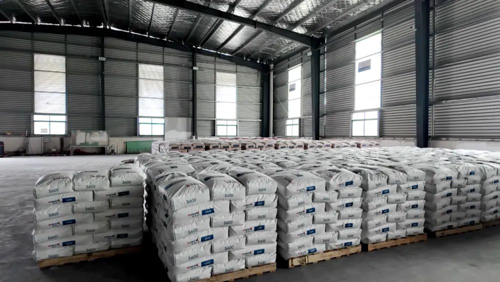 圖為堆放石膏的庫房