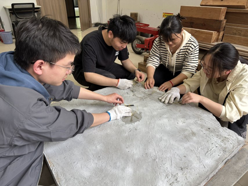 團(tuán)隊負(fù)責(zé)人張智瑜表示:“從研一進(jìn)校起,團(tuán)隊便聚焦建筑固廢再生難題。三年來,通過1200余組實驗,逐步攻克竹纖維界面改性、微粉活化及界面粘合三大技術(shù)難題,最終研發(fā)出重組竹-再生微粉泡沫混凝土智能板材。”