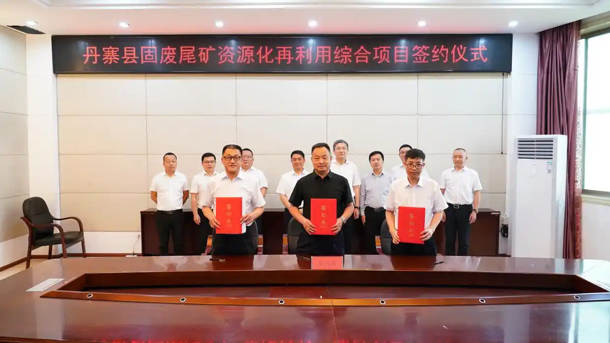 4月21日,丹寨縣固廢尾礦資源化再利用綜合項目簽約儀式舉行??h委常委、常務副縣長萬政出席儀式并講話??h委常委、縣政府副縣長、金鐘經(jīng)濟開發(fā)區(qū)黨工委副書記、管委會副主任周興標主持。縣領導楊維順、張來,中化學生態(tài)環(huán)境有限公司黨委書記、董事長邵程旺,副總經(jīng)理李永輝,江西蘭霞生態(tài)環(huán)境有限公司總經(jīng)理萬仁海等出席。