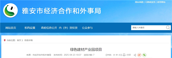4月23日,四川省雅安市經(jīng)濟(jì)合作和外事局發(fā)布一綠色建材產(chǎn)業(yè)園項(xiàng)目具體情況,有意向者可合資或合作。該項(xiàng)目總投資約50億元,擬分三期實(shí)施。一期投資約10.5億元,擬建年產(chǎn)1000萬(wàn)噸建筑骨料生產(chǎn)線,最終達(dá)到年產(chǎn)3000萬(wàn)噸的規(guī)模。該項(xiàng)目預(yù)計(jì)于2025年12月前啟動(dòng)。