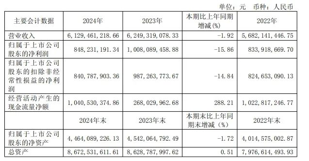 4月23日,景津裝備發(fā)布2024年度報(bào)告。2024年,景津裝備營(yíng)業(yè)收入61.29億元,同比下降1.92%。歸屬于上市公司股東的凈利潤(rùn)8.48億元,同比下降15.86%。