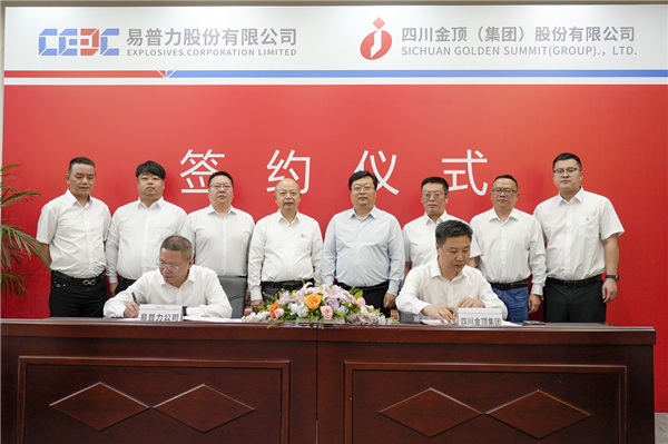 會(huì)談后,中能建易普力公司黨委副書(shū)記/總經(jīng)理鄧小英與四川金頂集團(tuán)總經(jīng)理熊記鋒代表雙方簽署戰(zhàn)略合作協(xié)議。