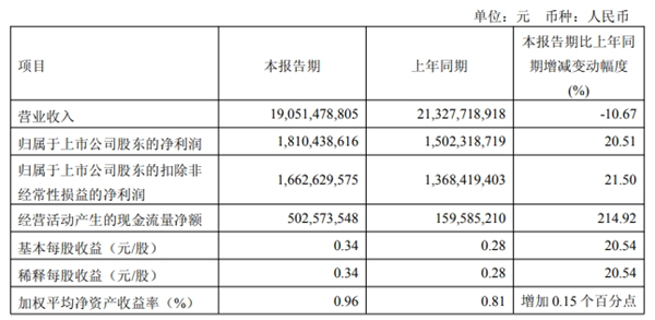 在現(xiàn)金流方面,經(jīng)營活動(dòng)現(xiàn)金凈流入為5.03億元,較去年同報(bào)告期經(jīng)營活動(dòng)現(xiàn)金凈流入增加3.43億元,同比較去年同期上漲214.92%。資產(chǎn)負(fù)債率方面,公司最新資產(chǎn)負(fù)債率為20.46%,較上季度資產(chǎn)負(fù)債率減少0.84個(gè)百分點(diǎn)。