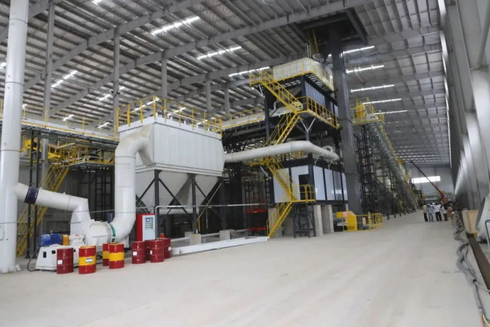 生產(chǎn)車間內(nèi),智能化生產(chǎn)線已安裝完成并在進(jìn)行調(diào)試