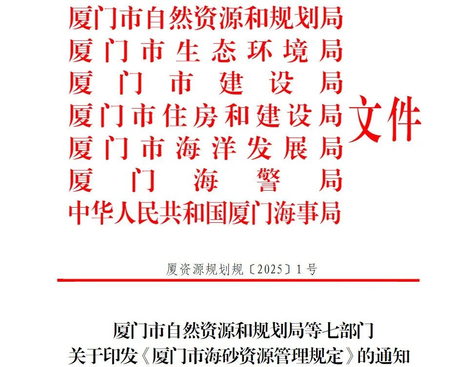 日前,廈門市自然資源和規(guī)劃局聯(lián)合市生態(tài)環(huán)境局、市財政局、市住建局、市海洋發(fā)展局、廈門海警局、廈門海事局等部門修訂出臺《廈門市海砂資源管理規(guī)定》(以下簡稱《規(guī)定》),進一步完善廈門海砂資源管理工作機制。