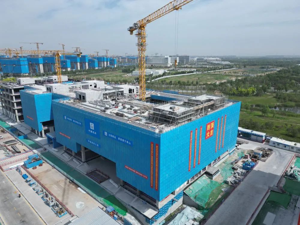 6月5日,中國礦產雄安總部項目主體結構封頂現(xiàn)場。(受訪單位供圖)