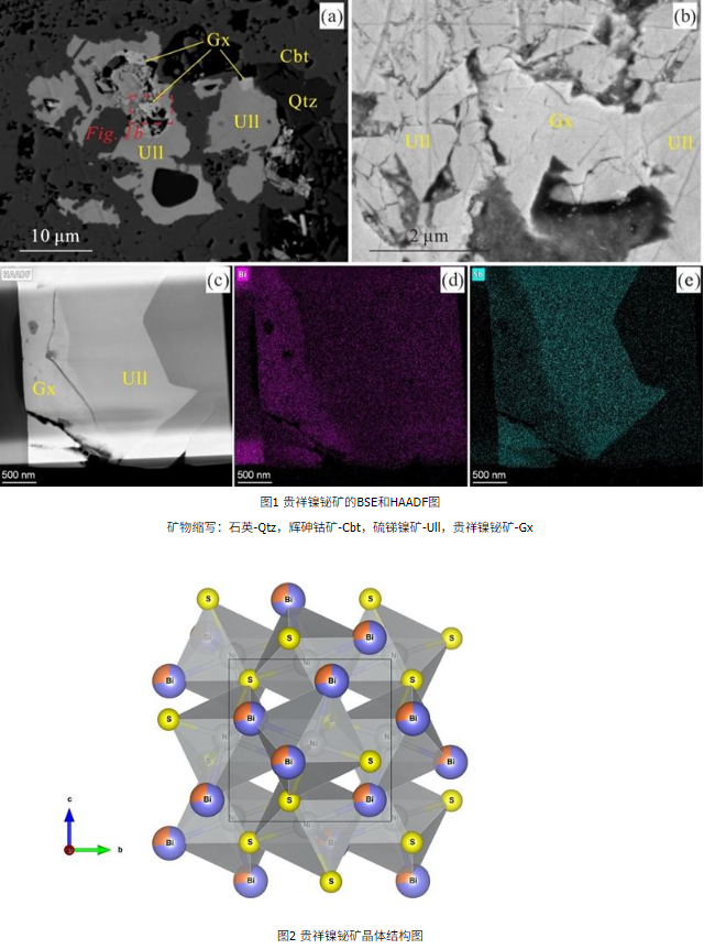 貴祥鎳鉍礦屬輝砷鈷礦族(Cobaltite Group),化學(xué)式NiBiS。Bi 52.90、S 11.86、Co 0.85、Sb 11.77、As 0.42、Ni 21.89、Fe 0.51。等軸晶系,空間群P213。a = 9.4528(4) Å,V = 772.83(5) Å3。該新礦物發(fā)現(xiàn)于桂東大瑤山金秀鎳鈷礦床,與鎳鈷礦化關(guān)系密切,對于揭示鎳鈷元素富集機(jī)制具有重要指示作用。該新礦物以中國地質(zhì)科學(xué)院研究員孟貴祥(1968–2024)的名字命名,以紀(jì)念他在鎳礦找礦突破行動(dòng)及地球物理探測技術(shù)應(yīng)用領(lǐng)域所做出的卓越貢獻(xiàn)。