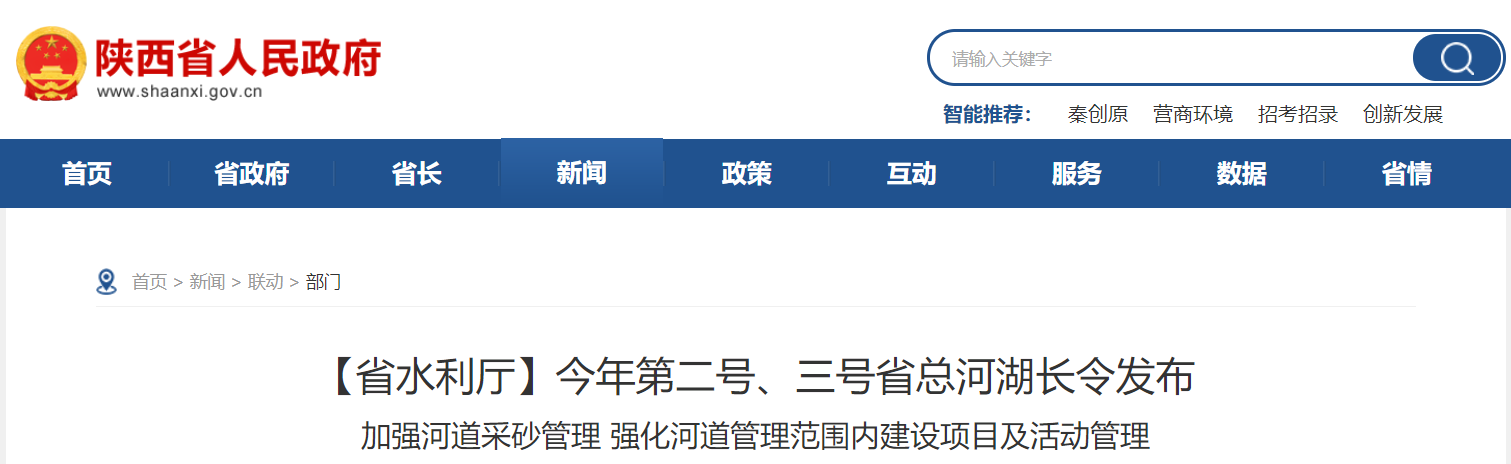 近日,陜西省委書記、省總河湖長趙一德,省長、省總河湖長趙剛共同簽發(fā)2025年第2號(hào)省總河湖長令,就加強(qiáng)河道采砂管理做出專題部署。