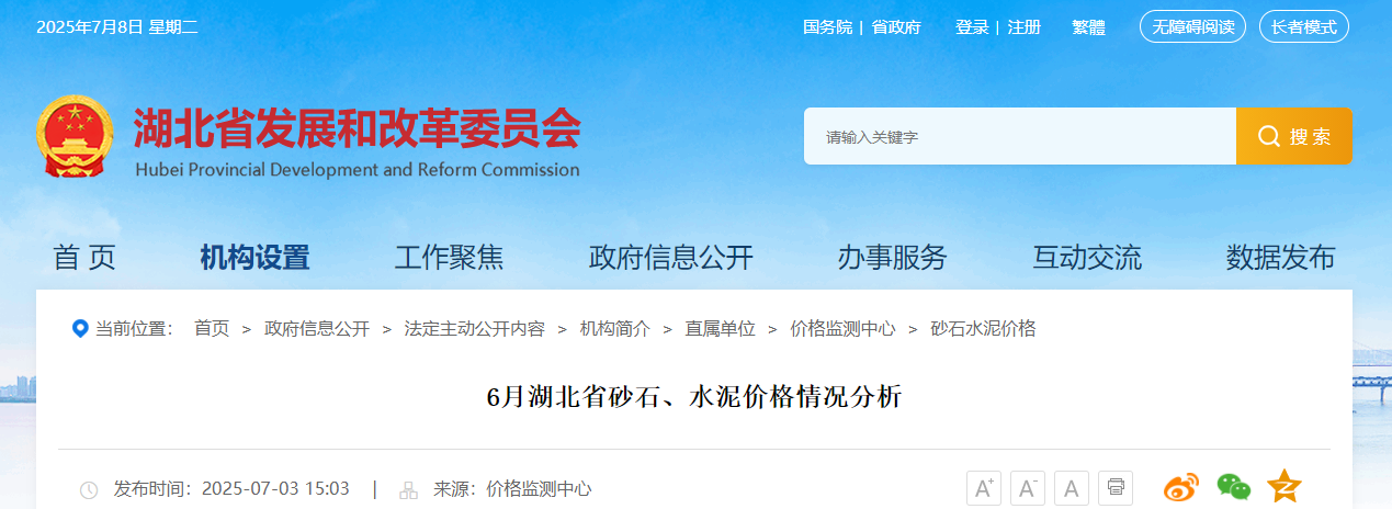 湖北省價格監(jiān)測中心發(fā)布6月份湖北市場天然砂、機制砂、碎石價格。據(jù)監(jiān)測數(shù)據(jù)顯示,湖北省部分主要建筑材料價格呈現(xiàn)出有漲有跌的態(tài)勢,整體以下降為主。其中,天然砂(中粗砂)價格環(huán)比小幅上漲,機制砂價格環(huán)比略有下降,兩者同比均呈下降趨勢;碎石各粒徑品種價格環(huán)比、同比均有所下降;水泥各強度等級品種價格環(huán)比、同比均出現(xiàn)下降;普通混凝土(強度等級C30)價格環(huán)比和同比也均呈下降態(tài)勢。同時汛期的到來也為市場增添了諸多不確定性因素。
