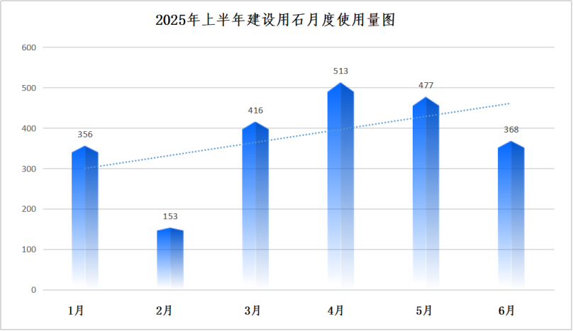 表2:2025上半年本市建設(shè)用石月度使用量情況表