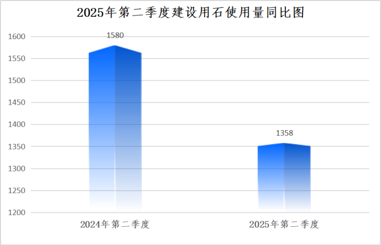 2025第二季度本市建設(shè)用石使用量為1358萬(wàn)噸,同比2024年第二季度1580萬(wàn)噸,下降了14.1%;環(huán)比2025年第一季度925萬(wàn)噸,增長(zhǎng)了46.81%。