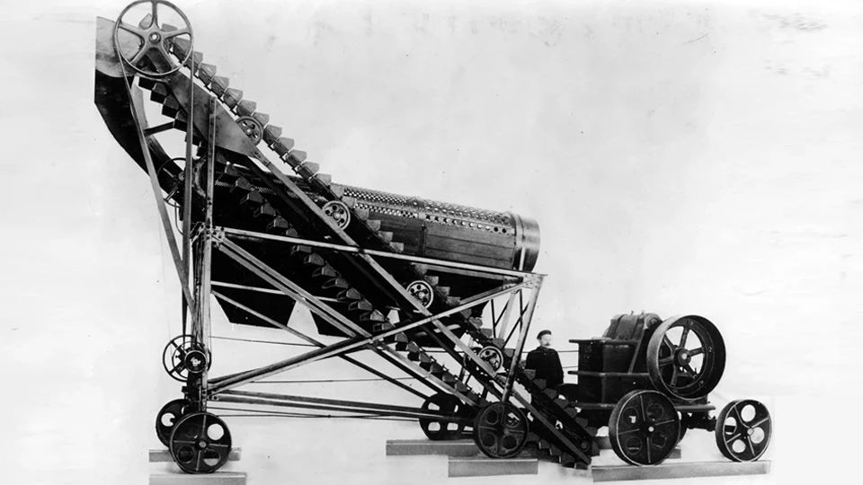 1921年,Lokomo工廠生產(chǎn)出世界上第一臺(tái)移動(dòng)破碎設(shè)備。輪胎上安裝了一臺(tái)顎式破碎機(jī)、輸送機(jī)和篩分機(jī)。