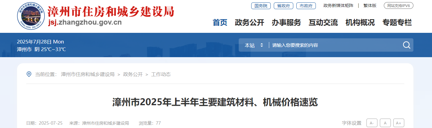 福建省漳州市建設(shè)工程造價站密切跟蹤主要建筑材料市場價格走勢,及時采集發(fā)布建材價格信息,服務(wù)建筑市場。經(jīng)歸集整理分析,現(xiàn)公布各類主要建筑材料價格半年度走勢情況,供各建設(shè)主體參考。