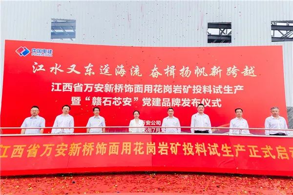7月27日,江西水電電建萬安公司舉行江西省萬安縣新橋飾面用花崗巖礦項目投料試生產(chǎn)暨黨建品牌“贛石芯安”發(fā)布儀式。江西水電黨委書記/董事長胡國清、黨委副書記/總經(jīng)理賴新峰、副總..