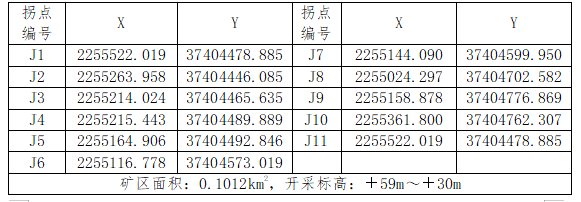礦權(quán)范圍坐標(biāo)及開采標(biāo)高:
