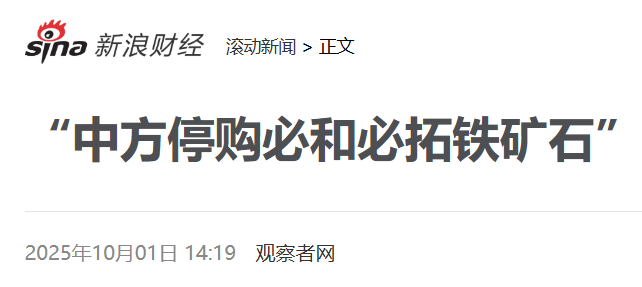中國礦產(chǎn)資源集團2025年9月30日向國內買家下達暫停采購指令,暫停購買所有以美元計價的必和必拓海運鐵礦石船貨,新合約簽署全面停滯,已裝船貨物也被攔截。