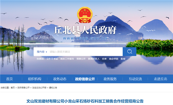 10月11日,云南省文山州國有企業(yè)——文山雙龍建材有限公司發(fā)布公告,擬公開征集合作經(jīng)營方,共同開發(fā)經(jīng)營文山州丘北縣雙龍營鎮(zhèn)小龍山建筑石料用石灰?guī)r礦,合作期限為3年。