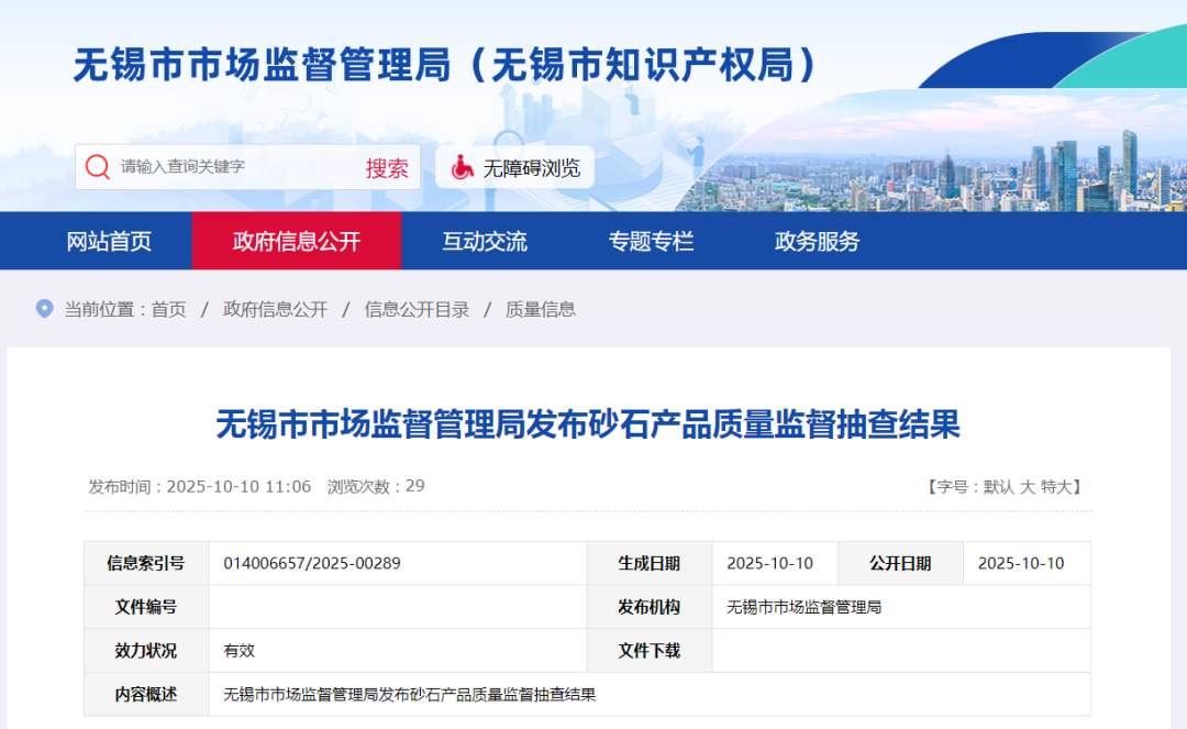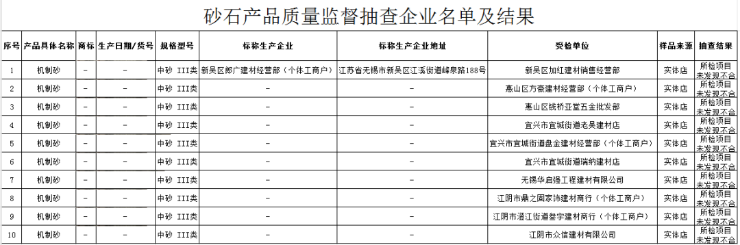 無錫市市場監(jiān)督管理局發(fā)布砂石產(chǎn)品質(zhì)量監(jiān)督抽查結(jié)果