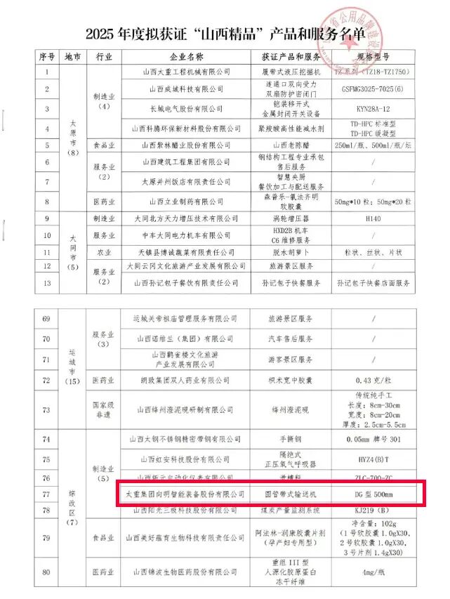 "山西精品"是由山西省委、省政府著力打造的區(qū)域公用品牌,以"高標(biāo)準(zhǔn)、嚴(yán)認(rèn)證、強(qiáng)監(jiān)管"為核心機(jī)制,旨在培育代表山西高質(zhì)量制造水平的標(biāo)桿產(chǎn)品。此次入選,標(biāo)志著太重向明在節(jié)能環(huán)保、智能化創(chuàng)新方面的技術(shù)實(shí)力已達(dá)到行業(yè)領(lǐng)先水平。