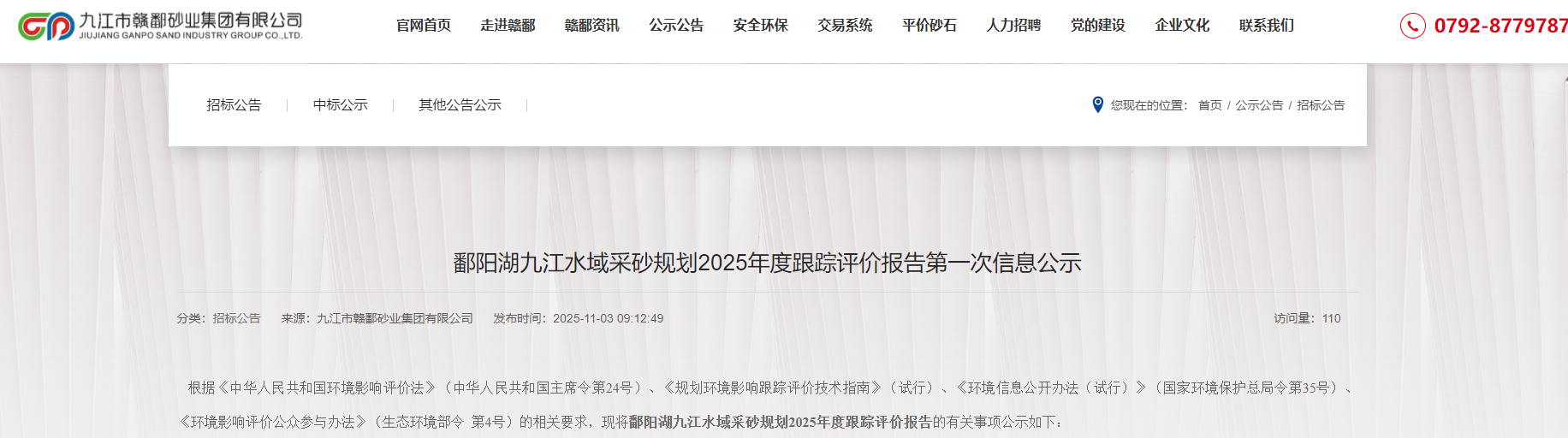 鄱陽(yáng)湖九江水域采砂規(guī)劃2025年度跟蹤評(píng)價(jià)報(bào)告第一次信息公示