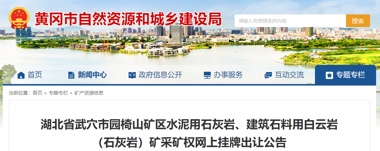 黃岡市自然資源和城鄉(xiāng)建設(shè)局近日發(fā)布湖北省武穴市園椅山礦區(qū)水泥用石灰?guī)r、建筑石料用白云巖(石灰?guī)r)礦采礦權(quán)網(wǎng)上掛牌出讓公告。項目掛牌起始價為41037萬元,