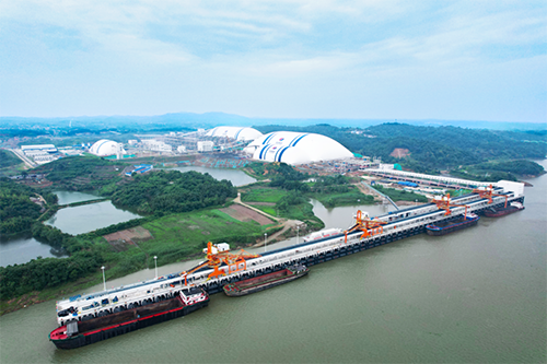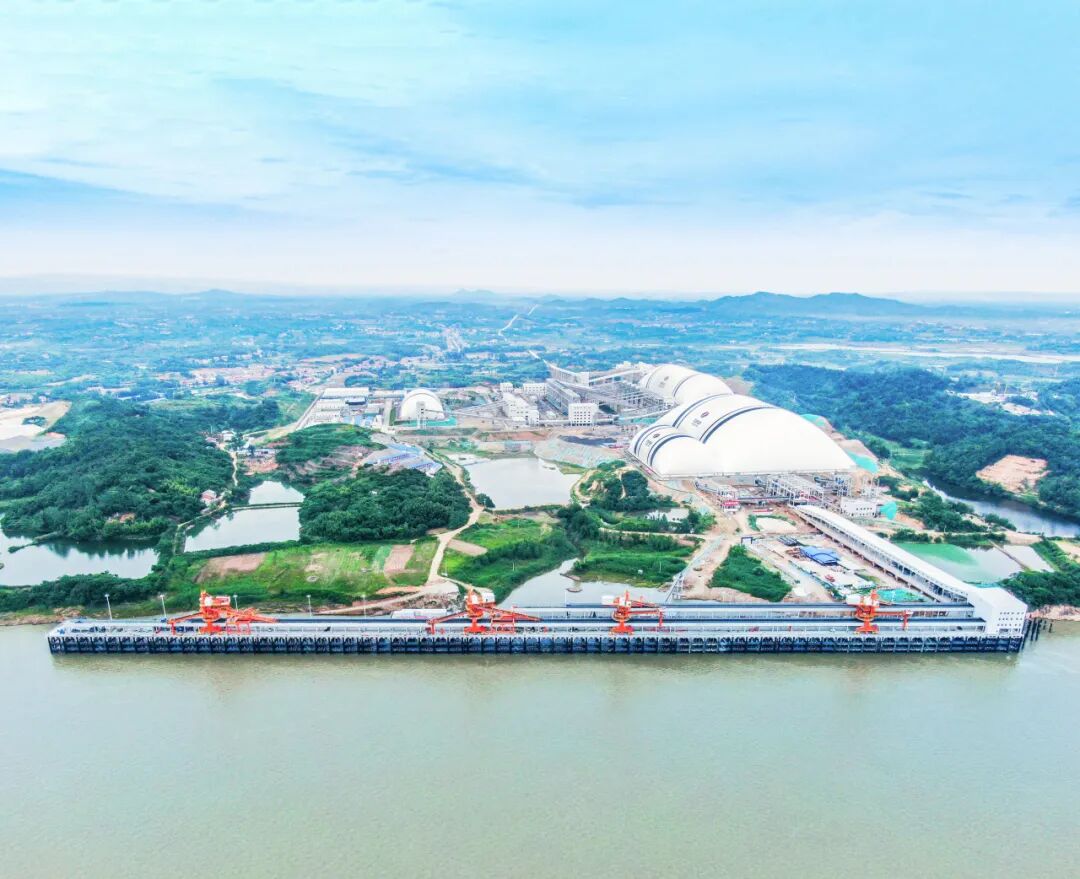 據(jù)了解,該碼頭設(shè)計(jì)年通過(guò)能力3200萬(wàn)噸、配備4個(gè)10000噸級(jí)散貨泊位的現(xiàn)代化碼頭。作為湖北省重點(diǎn)項(xiàng)目——蘄春縣石鼓沖綠色建材基地的關(guān)鍵物流通道,通過(guò)39.5公里封閉式膠帶輸送廊道與后方礦山無(wú)縫銜接,實(shí)現(xiàn)砂石骨料“礦山開(kāi)采——廊道運(yùn)輸——碼頭裝船”全程無(wú)揚(yáng)塵、零污染運(yùn)輸,直連長(zhǎng)江黃金水道,顯著提升多式聯(lián)運(yùn)效率。