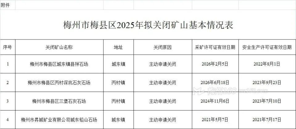 附件:梅州市梅縣區(qū)2025年擬關(guān)閉礦山基本情況表.xlsx