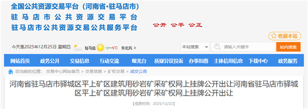 該采礦權(quán)位于駐馬店市驛城區(qū)沙河店鎮(zhèn),面積1.3894平方千米。項目為老礦山退出重新規(guī)劃出讓,采礦權(quán)競得人除按要求繳納采礦權(quán)出讓收益外,還需在成交結(jié)果公示無異議后20日內(nèi),按照驛城區(qū)人民政府要求,繳納1.004億元到驛城區(qū)財政局指定賬戶,由驛城區(qū)財政局對原采礦權(quán)人進行補償。