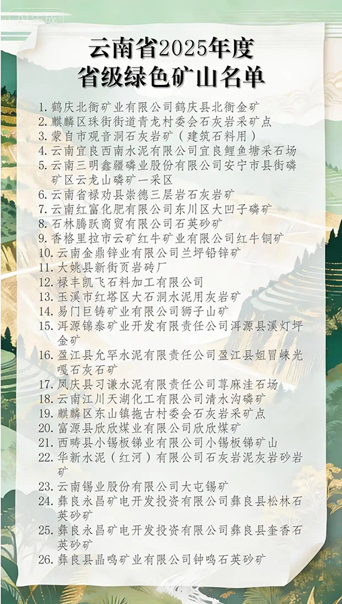 2025年遴選工作中,云南省自然資源廳始終堅持政府引導,持續(xù)加強對礦山企業(yè)的指導幫助。一方面,高位推動,報請省人民政府同意,聯(lián)合6部門印發(fā)《云南省綠色礦山建設(shè)實施方案》,從目標任務、全面推進綠色礦山建設(shè)、加大政策支持力度、工作步驟、保障措施等方面進一步完善云南省綠色礦山建設(shè)政策舉措;另一方面,強化宣講,常態(tài)化深入礦山一線開展政策培訓、技術(shù)服務和業(yè)務指導,對標對表,幫助企業(yè)查找不足,共謀創(chuàng)建“一礦一策”“一企一方案”,全力助企創(chuàng)建綠色礦山。