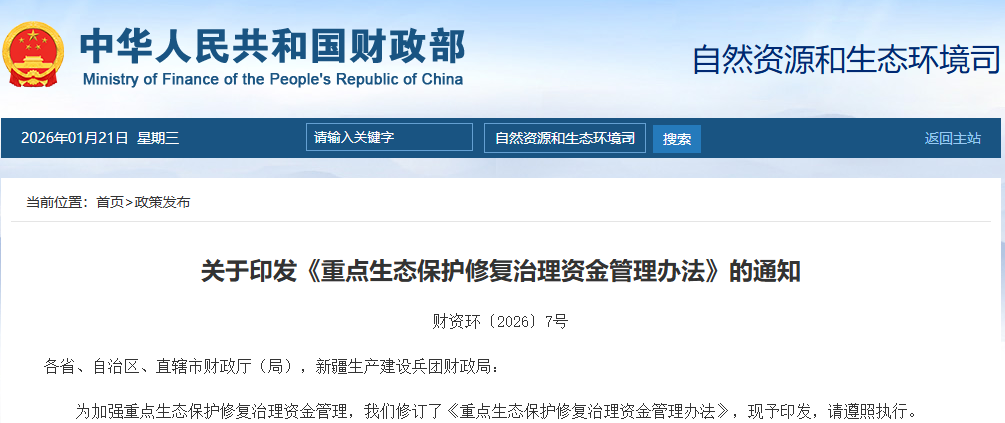 近日,財政部重磅發(fā)布通知,對《重點生態(tài)保護(hù)修復(fù)治理資金管理辦法》進(jìn)行了全面修訂。這一舉措意義非凡,不僅明確了“十五五”時期山水林田湖草沙一體化保護(hù)和修復(fù)工程、歷史遺留廢棄礦山生態(tài)修復(fù)工程的財政支持政策,更為生態(tài)保護(hù)修復(fù)事業(yè)注入了強勁的政策動力與資金活水。其核心目的在于規(guī)范資金使用管理,確保每一分財政資金都精準(zhǔn)滴灌到生態(tài)修復(fù)的“根系”,切實促進(jìn)生態(tài)系統(tǒng)保護(hù)與修復(fù)。