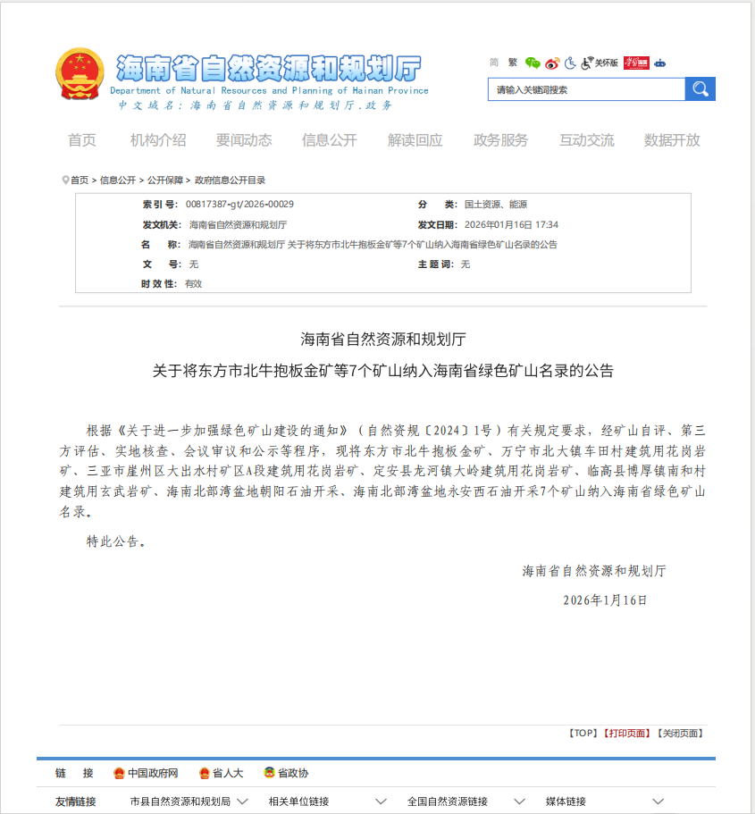 2026年1月16日,海南省自然資源和規(guī)劃廳公布了最新一批海南省綠色礦山名錄,中電建(萬(wàn)寧)綠色建材有限公司萬(wàn)寧市北大鎮(zhèn)車田村建筑用花崗巖礦憑借扎實(shí)的綠色建設(shè)成效、規(guī)范的生產(chǎn)運(yùn)營(yíng)管理及突出的生態(tài)保護(hù)成果,并經(jīng)過(guò)縣市級(jí)及省級(jí)相關(guān)部門多輪嚴(yán)格審查和專業(yè)評(píng)估后成功入選。