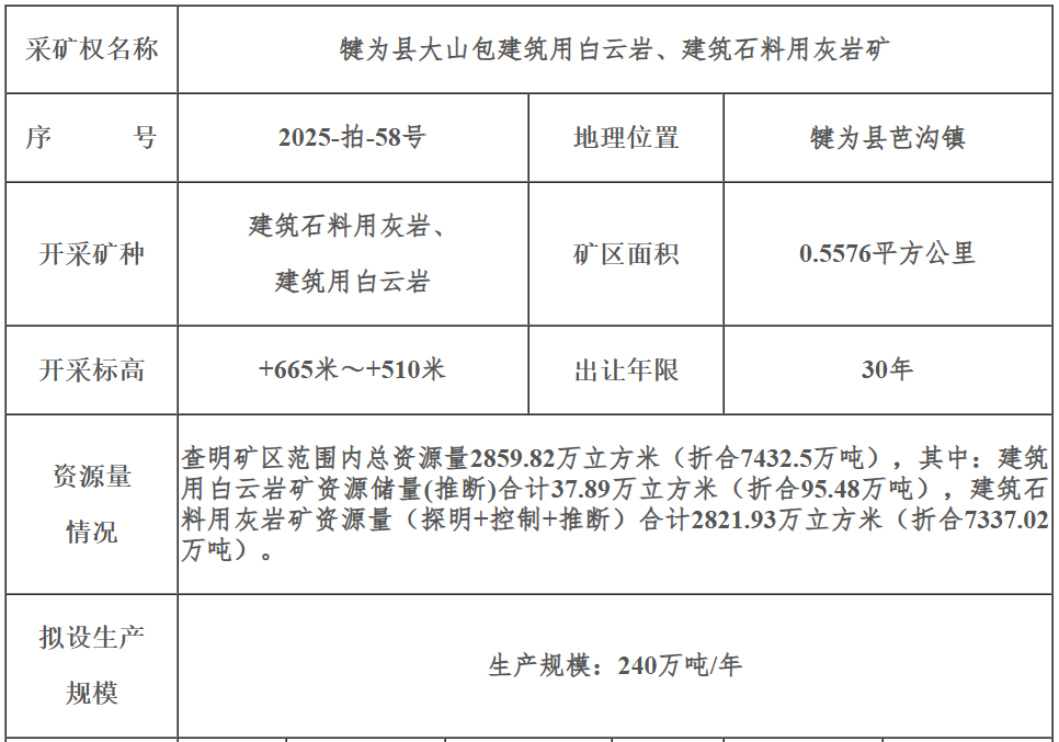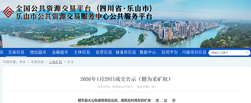 近日,四川樂山市公共資源交易服務(wù)中心發(fā)布犍為縣大山包建筑用白云巖、建筑石料用灰?guī)r礦采礦權(quán)成交公示。四川省焱黃礦業(yè)有限公司以2.96億元成功競(jìng)得該項(xiàng)目,相較起始價(jià)12460萬(wàn)元,溢價(jià)率達(dá)13..
