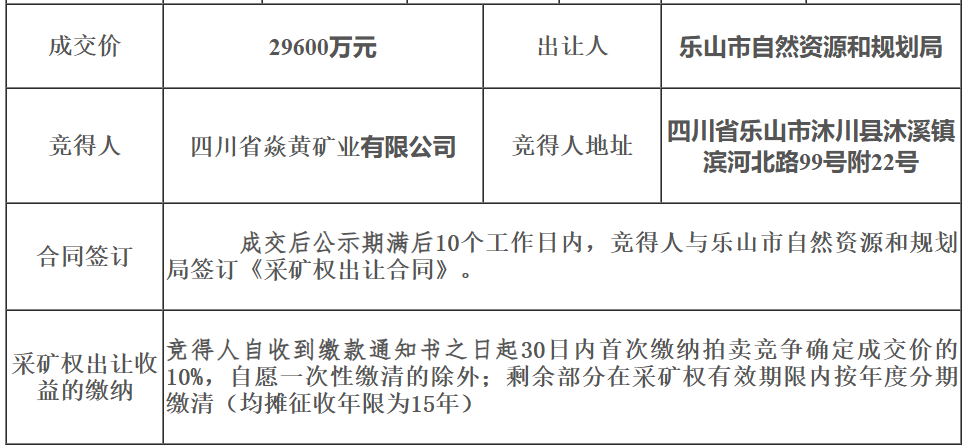 近日,四川樂山市公共資源交易服務(wù)中心發(fā)布犍為縣大山包建筑用白云巖、建筑石料用灰?guī)r礦采礦權(quán)成交公示。四川省焱黃礦業(yè)有限公司以2.96億元成功競(jìng)得該項(xiàng)目,相較起始價(jià)12460萬(wàn)元,溢價(jià)率達(dá)137%!