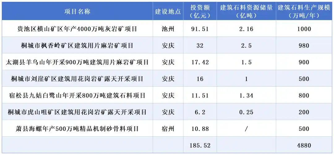 經(jīng)梳理,此次三省納入清單的砂石相關(guān)礦產(chǎn)項目共計15個,其中安徽7個、江西5個、浙江3個,合計產(chǎn)能突破7300萬噸/年,總投資額超333億元。