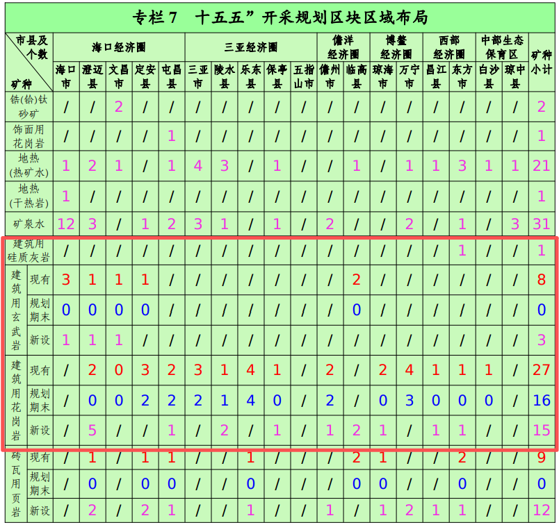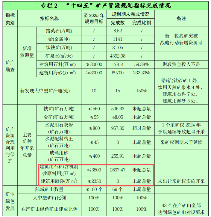 日前,海南省自然資源和規(guī)劃廳發(fā)布《海南省礦產資源規(guī)劃(2026-2030年)》(征求意見稿)?!兑?guī)劃》中涉及砂石的主要有: