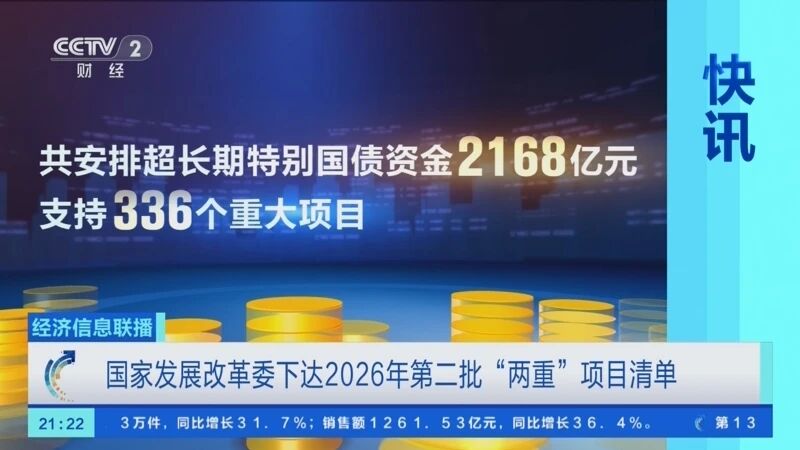 近日,國家發展改革委會同有關部門組織下達2026年第二批“兩重”建設項目清單,共安排超長期特別國債資金2168億元支持336個重大項目。截至目前,今年累計下達 “兩重” 建設資金達6065億元,占全年8000億元計劃的 76%,資金下達進度顯著快于去年。