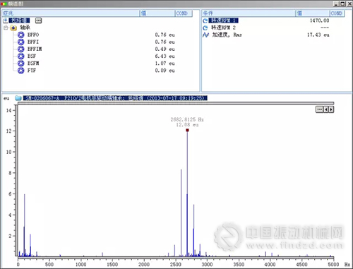 圖4A點水平振動加速度包絡(luò)頻譜圖