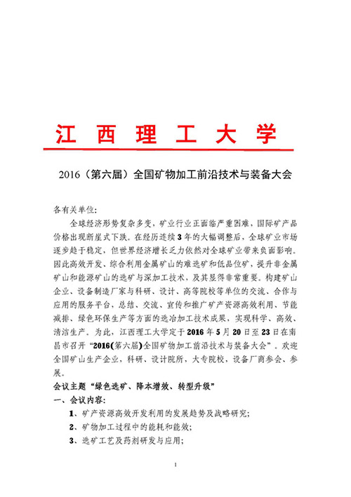 2016(第六屆)全國(guó)礦物加工前沿技術(shù)與裝備大會(huì)