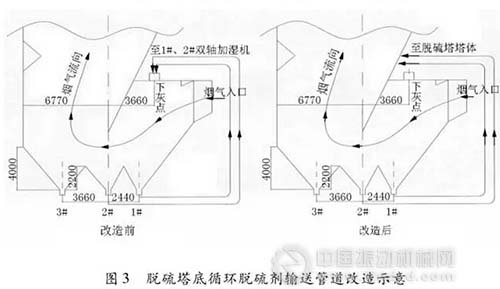 3. 3 優(yōu)化循環(huán)脫硫劑工藝管道,提高循環(huán)速率