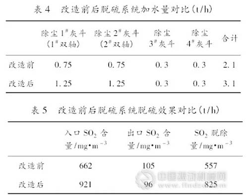 1)通過(guò)對(duì)脫硫塔底灰斗改造,解決了原灰斗積灰、結(jié)塊的問(wèn)題,使脫硫塔底所有的脫硫劑均參與脫硫系統(tǒng)的循環(huán),提高了脫硫劑的循環(huán)量,同時(shí)為提高脫硫劑的加水量提供了條件,有利于系統(tǒng)脫硫效率的提高。
